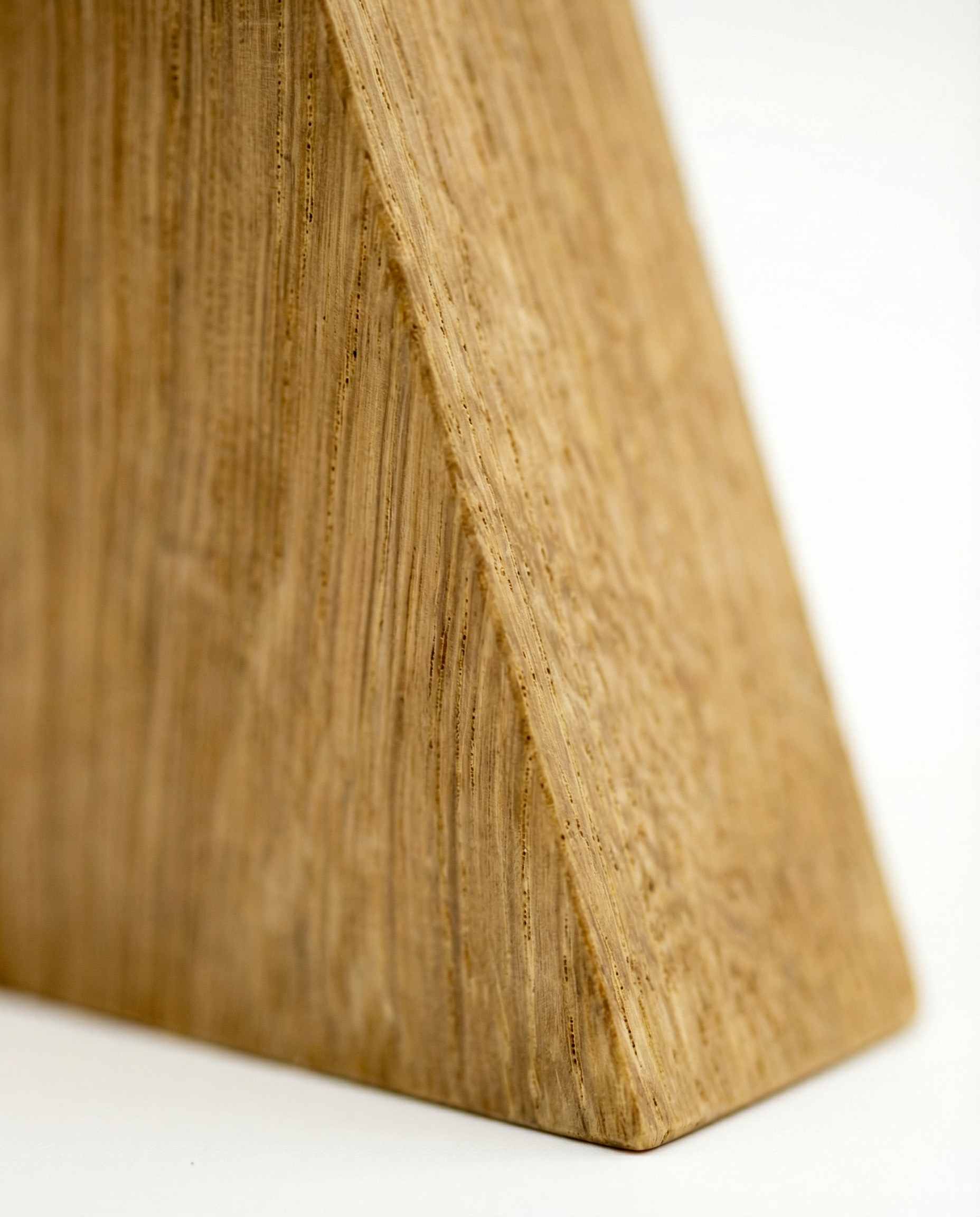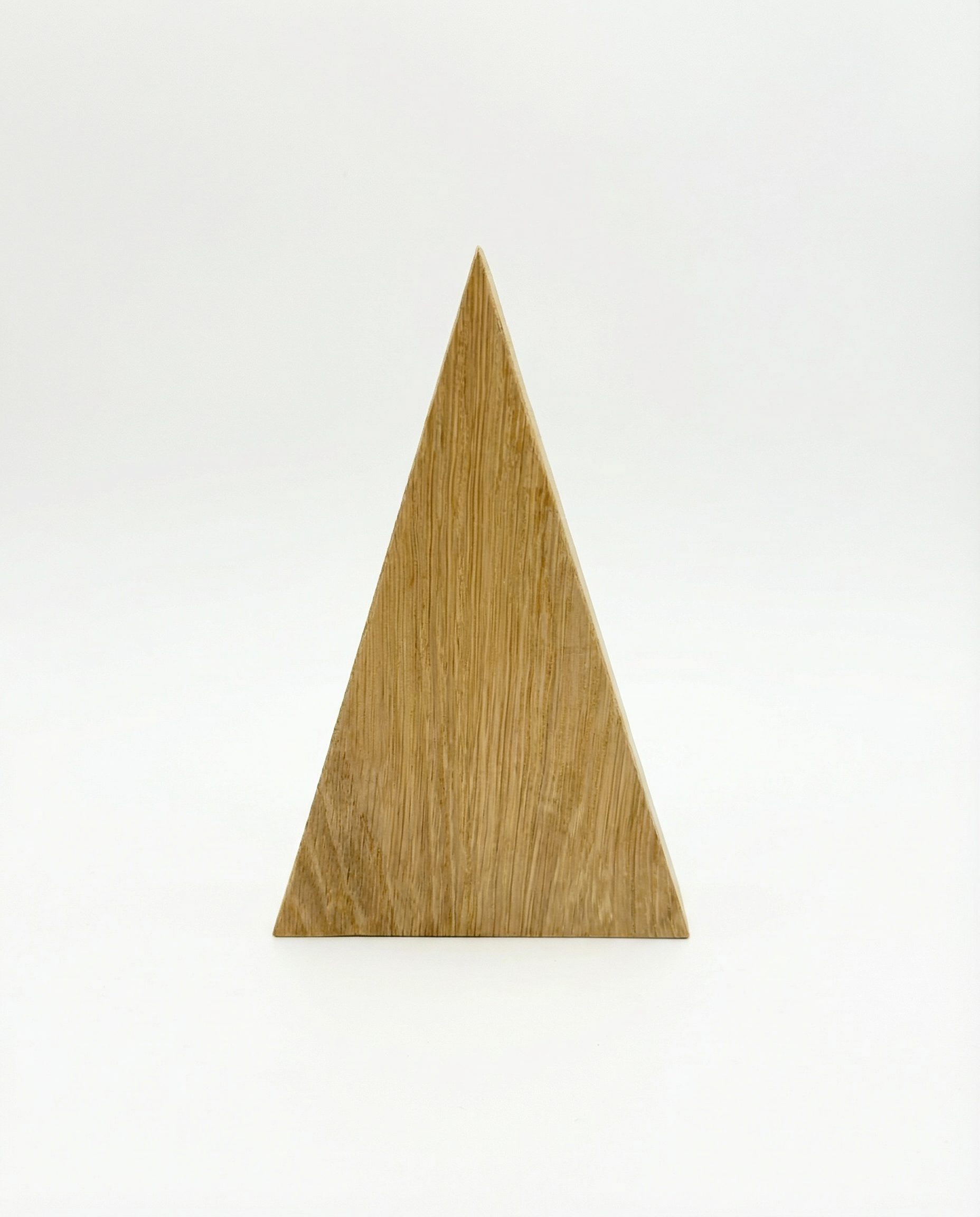 Jede Dreieckstanne wird aus hochwertiger, nachhaltig gewonnener Eiche gefertigt und sorgfältig geschliffen. Durch die Maserung ist jedes Stück ein Einzelstück.
