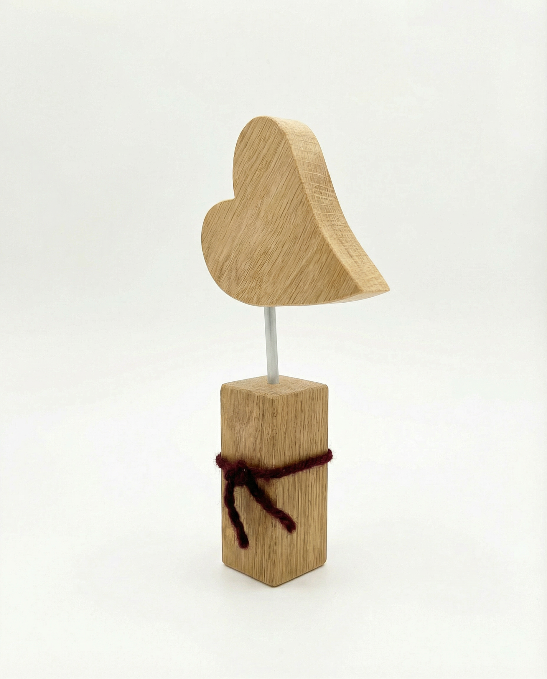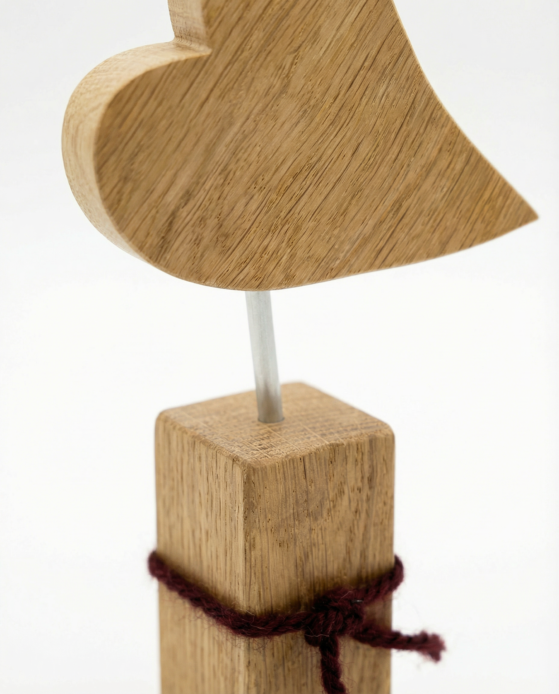 Jede Herzstatue wird aus hochwertiger, nachhaltig gewonnener Eiche gefertigt und sorgfältig geschliffen. Durch die Maserung ist jedes Stück ein Einzelstück.
