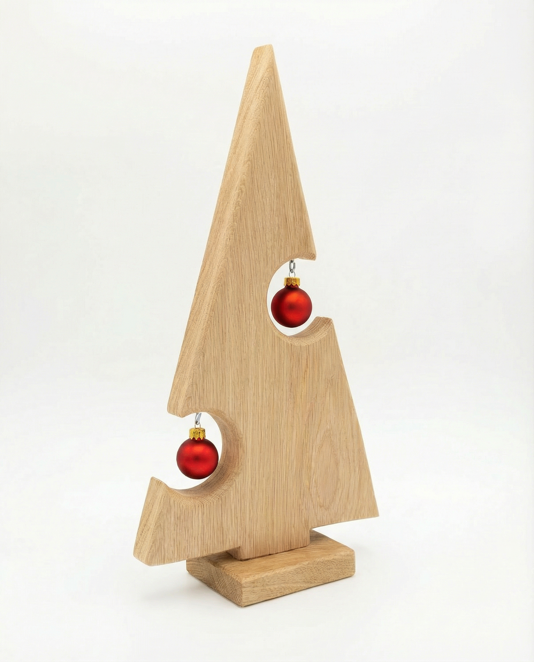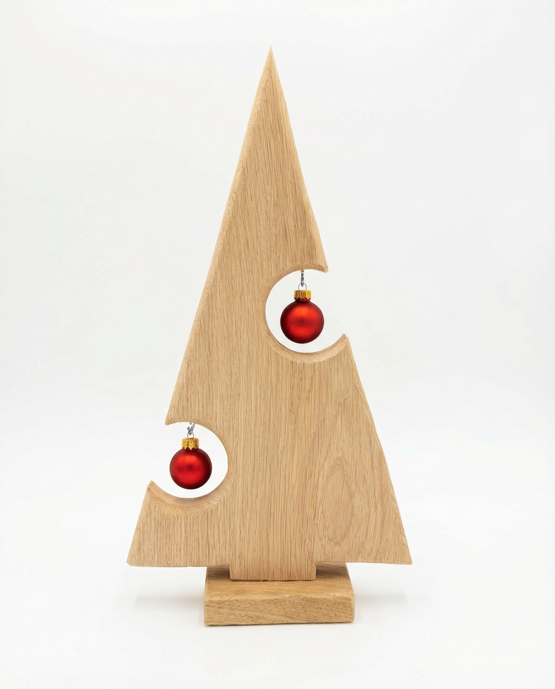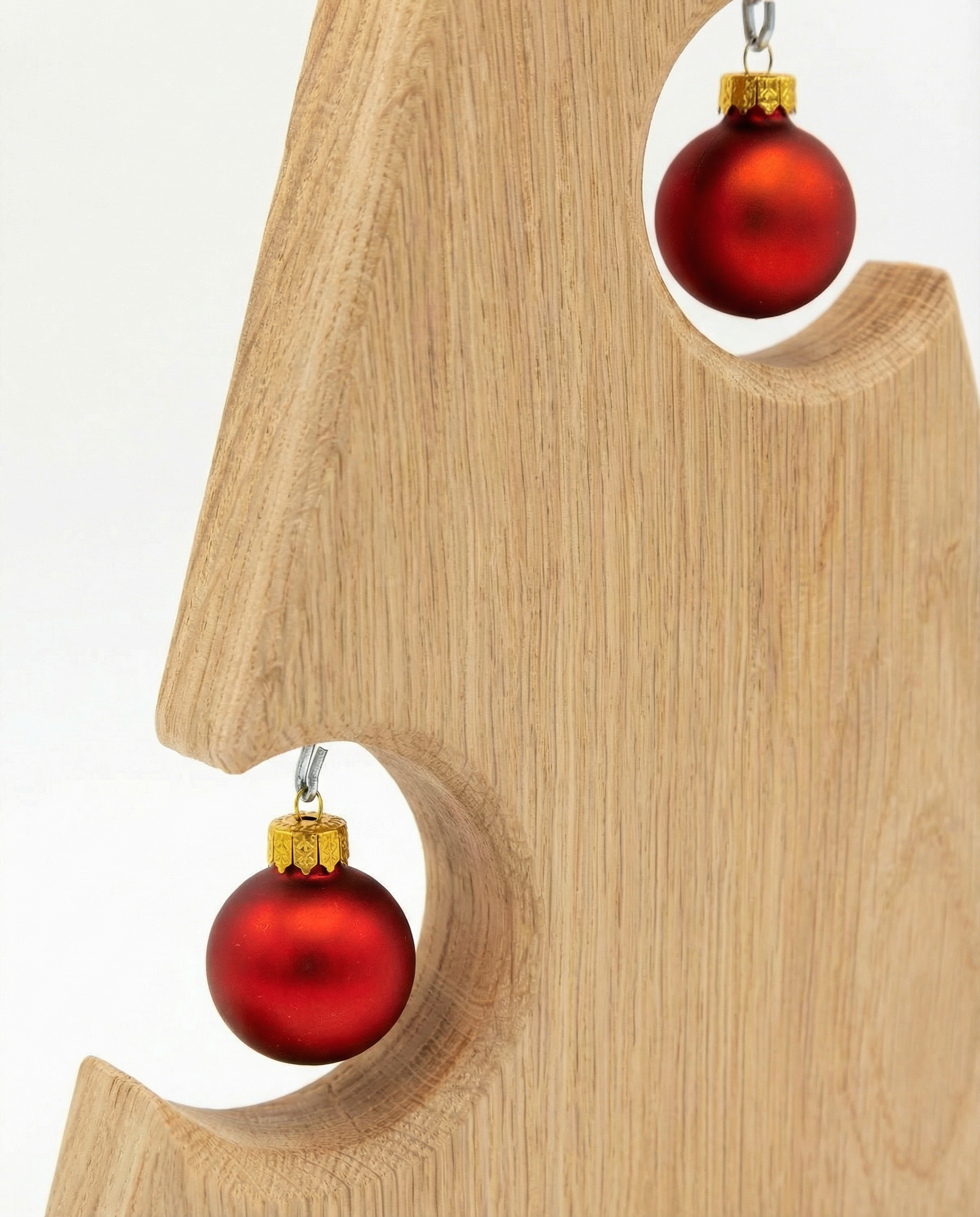 Jede Kugeltanne wird aus hochwertiger, nachhaltig gewonnener Eiche gefertigt und sorgfältig geschliffen. Durch die Maserung ist jedes Stück ein Einzelstück.